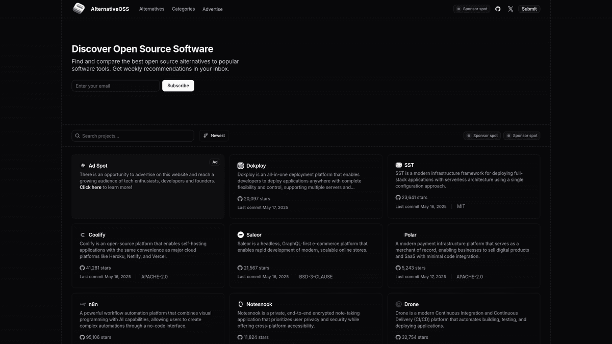 Find Open-Source Alternatives to Your Favorite Software with AlternativeOSS.