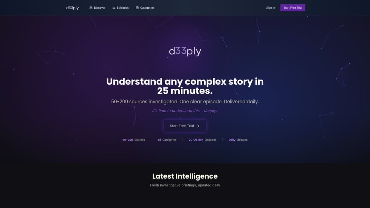 Understand complex stories in 25 minutes—daily investigative AI podcasts powered by 50–200 sources.